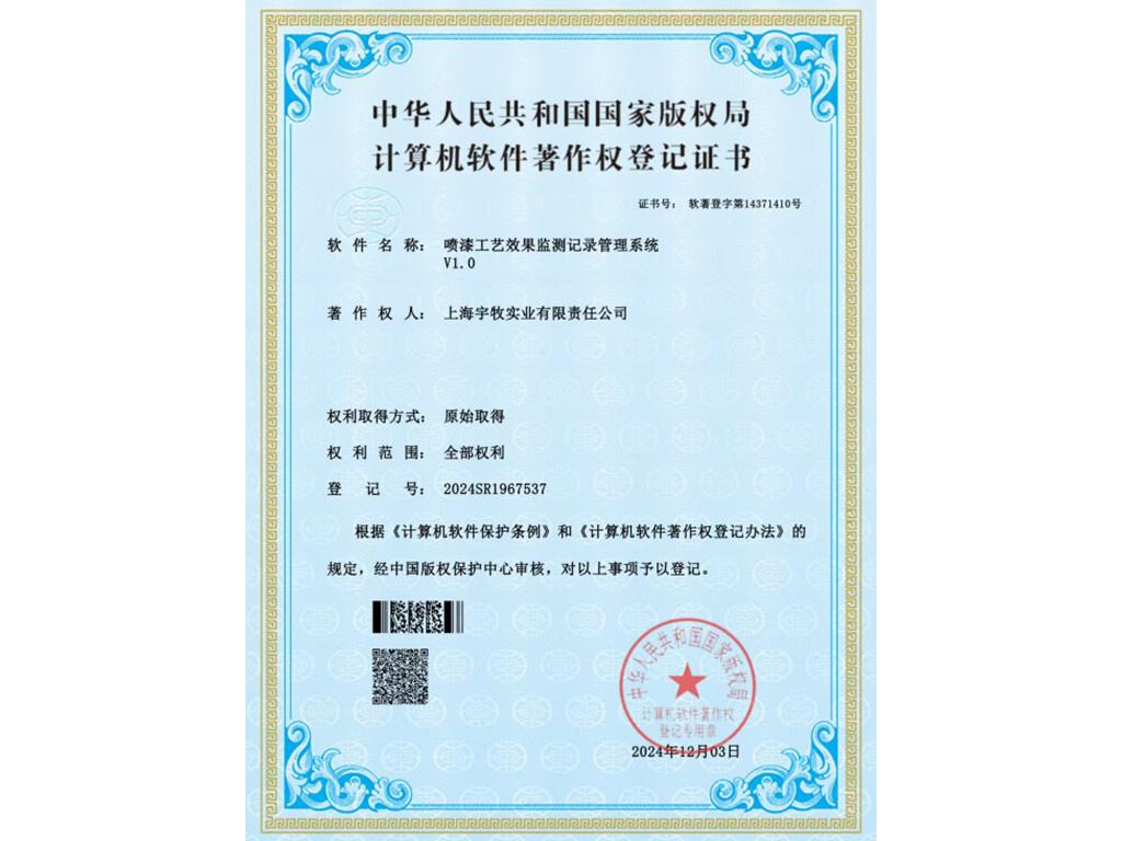 喷漆工艺效果监测记录管理系统专利证书
