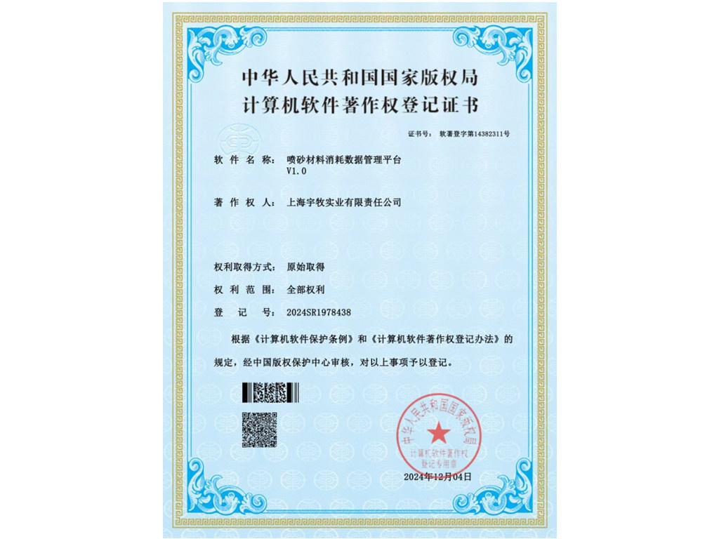 喷砂材料消耗数据管理平台专利证书