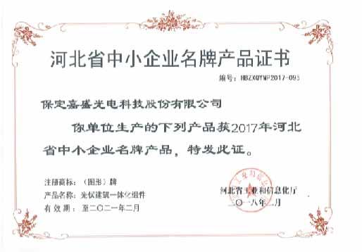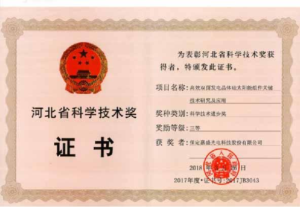 嘉盛光电河北省科技进步三等奖