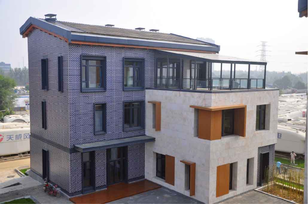 英利嘉盛的“青砖”和“黛瓦”外形和颜色突破传统光伏发电板的设计,使得光伏发电板不仅作为产能功能材料还做为建筑饰面材料进行了创新应用。