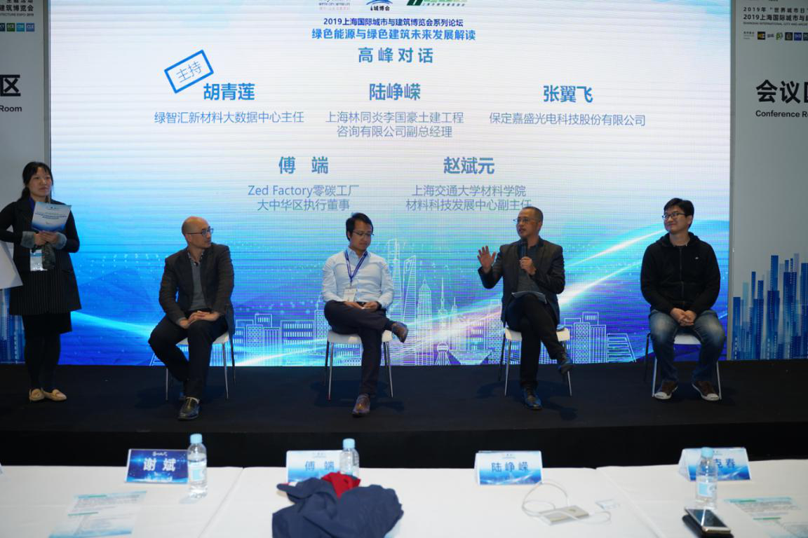 展会期间,嘉盛光电副总经理张翼飞还出席了同期举行的“绿色能源与绿色建筑未来发展解读”高峰对话,并就光伏建筑如何降低成本发表了自己的看法。
