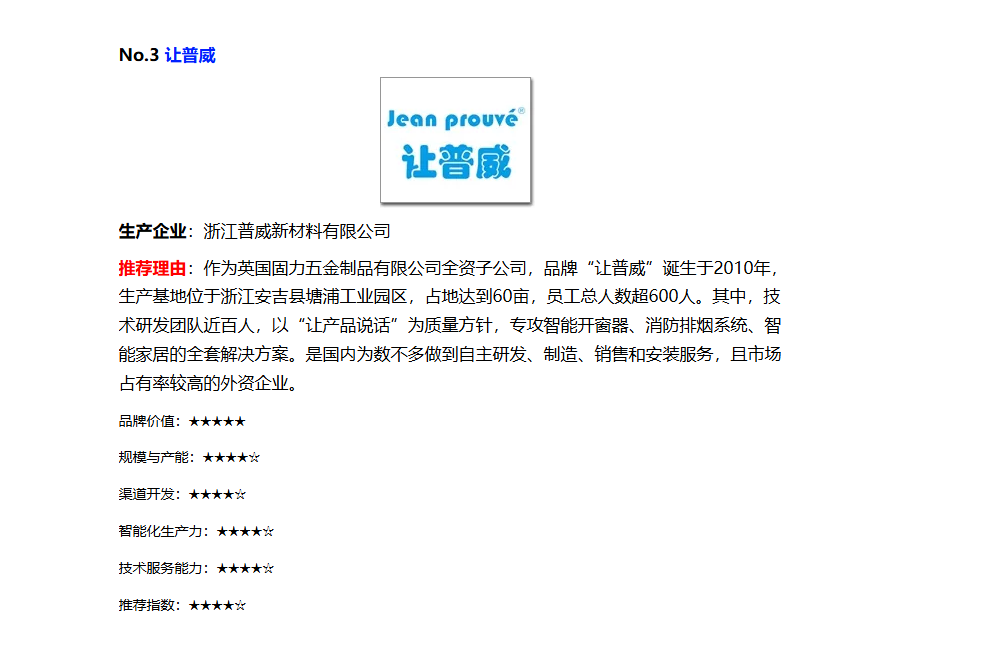 | 建筑行业内整体发展稳定,企业在面临外部竞争压力与国际竞争压力下,大多数选择加大技术研发及产品更新迭代,企业发展速度快,科技型及附加值逐步上升,数字化及智能化技术应用更加普及,行业中品牌的影响力稳步提升。中国幕墙网ALwindoor.com根据中国建筑金属结构协会铝门窗幕墙分会多年来持续开展的“行业数据统计工作“,以及企业评测 “五要素,选出2025年度市场首选的高端开窗器品牌,浙江普威新材料有限公司公的让普威品牌排列前三。