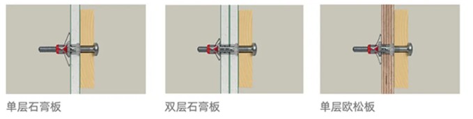 慧鱼空腔锚栓DuoHM,适用于石膏板,实木板,多层板,颗粒板等有空腔基材的产品的锚固。广泛适用于电视支架、书架、画框、镜子、吊灯、窗帘轨道等。