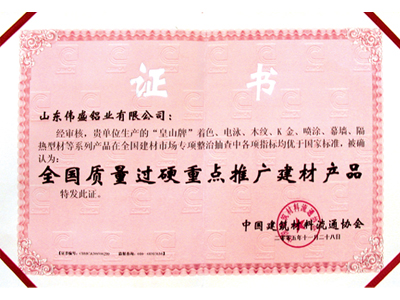 全国质量过硬重点推广建材产品 |