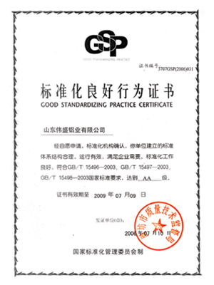 标准化良好行为证书 |