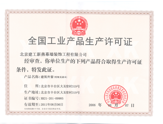 建筑幕墙生产许可证 |