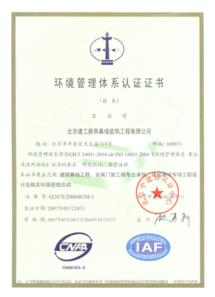 环境管理体系认证证书副本 |