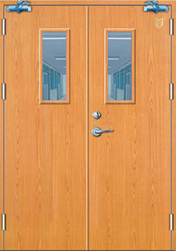 平开式防火门(fire resistant side hung doorsets) 由门框、门扇和防火铰链、防火锁等防火五金配件构成的,以铰链为轴垂直于地面,该轴可以沿顺时针或逆时针单一方向旋转以开启或关闭门扇的防火门。