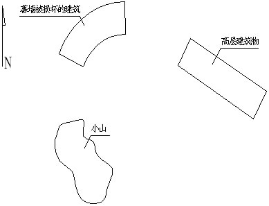 A、建筑物所处位置不利。该建筑所处位置及建筑平面图图二所示。由于台州台风时最大风速风向为东南风与东北风,此