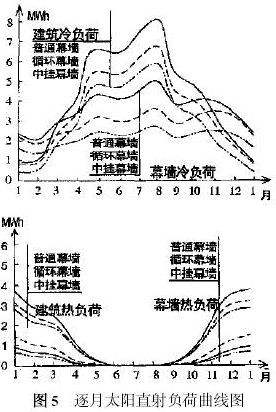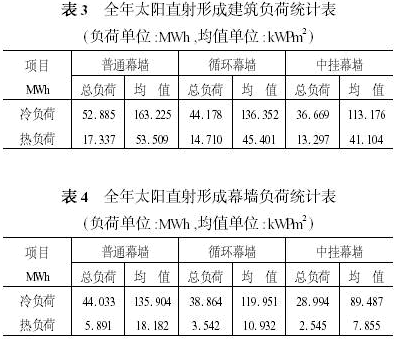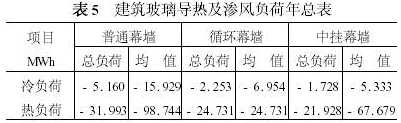 上面分析了影响负荷的几个主要因素,包括冷热负荷峰值、太阳直射、玻璃导热及渗风形成的负荷,事实上还有墙体、屋顶以及室内人体与照明形成的负荷,本文仅针对几个与幕墙相关的主要因素进行分析。