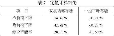 根据上述各项指标分析,可以得出以下结论(见表7) 。据有关资料记载,该类幕墙节能效益约38 % ~52 %[1 ] ,经Doe - 2. 1 验算与资料记载相符。幕墙本身导致大量冷负荷产生,降低冷负荷难度较大,是今后研究的重点。在夏热冬冷地区,协调冬夏两季的矛盾是玻璃幕墙节能的方向之一。