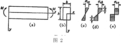 相应的应力分布示于图2c中.梁的所有纵向纤维均处于弹性状态,而最远的纵向纤维刚好达到屈服点应力: