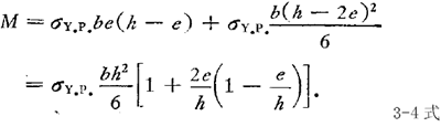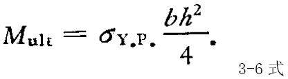 3-3式和3-6式系对矩形梁推导的,对于此截面形状,引起梁完全破坏所需的弯矩比塑性变形刚开始发生时要大50%。即:Mult/M-MY.P=(σY.P bh2/4)/(σY.P bh2/6)=1.5对于其它形状的对称截面,不难导出类似的方程式。
