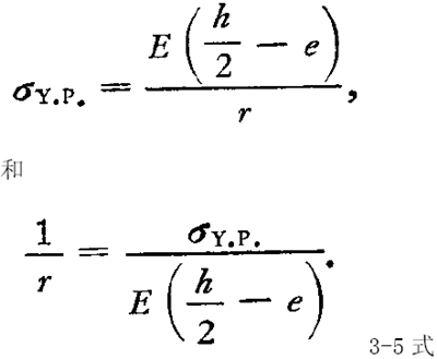 梁相应的挠度曲线曲率可由3-1式求得.将此式应用于离中性轴(h/a)-e处的纵向纤维,井考虑到这些纵向纤维中的应力正好到 σY.P屈服点得: