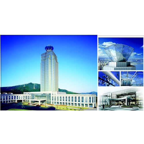 本工程幕墙形式包括大跨度钢框架幕墙,竖明横隐玻璃幕墙,铝板幕墙(词条“铝板幕墙”由行业大百科提供),金属屋面,大型采光顶,黄墙格栅,开放式GRC板幕墙,BAMBOO玻璃幕墙,幕墙总面积达12.52万平米,造价3亿元。