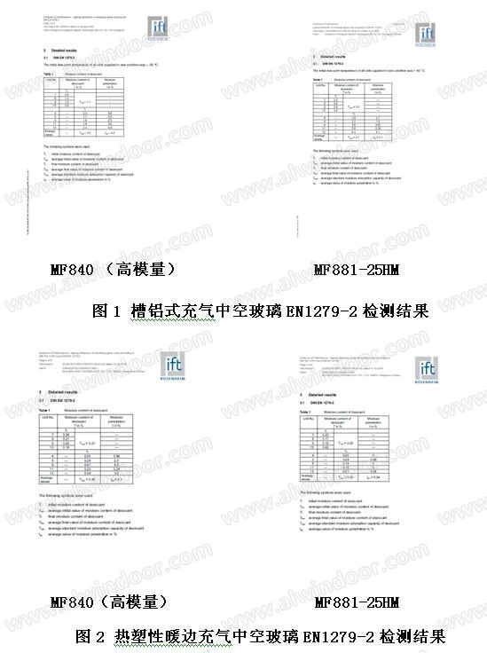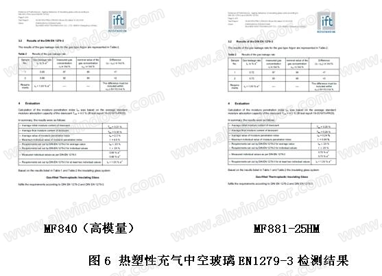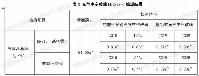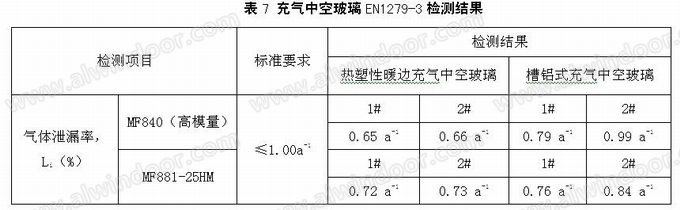 制作好的充气中空玻璃样品送检德国IFT(罗森汉姆)检测机构中心按照欧洲标准EN 1279-3进行测试,检测结果见表7:
