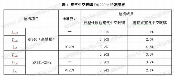 制作好的充气中空玻璃样品送检德国IFT(罗森汉姆)检测机构中心按照欧洲标准EN 1279-2进行测试,检测结果见表4: