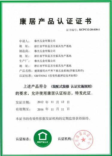 康居产品认证证书 |