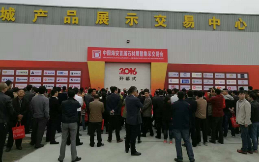 | 2016年10月15日,中国海安首届石材展暨集采交易会在江苏海安老坝港滨海新区海安国际石材城内拉开了帷幕。本次展会暨集采交易会为期2天,以“展新‘石’代,与‘石’俱进”为主题,集中展示了石材生产的新技术、新产品,吸引了来自上海、福建、广东等地石材生产厂商100多家参展,来自全国各地的客商1200多人前来参观、采购。