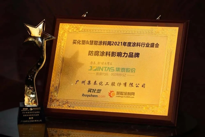 | 6月25-26日,由买化塑、慧正资讯主办,慧聪涂料网、慧聪防水网联合主办的“聚力融创新格局”买化塑2021涂料行业品牌盛会在北京成功举办。 集泰股份受邀出席大会,凭借创新的市场表现、卓越的综合实力以及杰出的客户口碑,获得“防腐涂料影响力品牌”奖项。