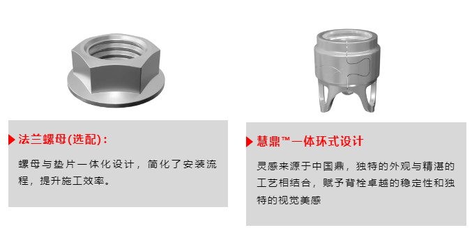 扩压片设计增强了背栓的承载能力,确保安全性更高