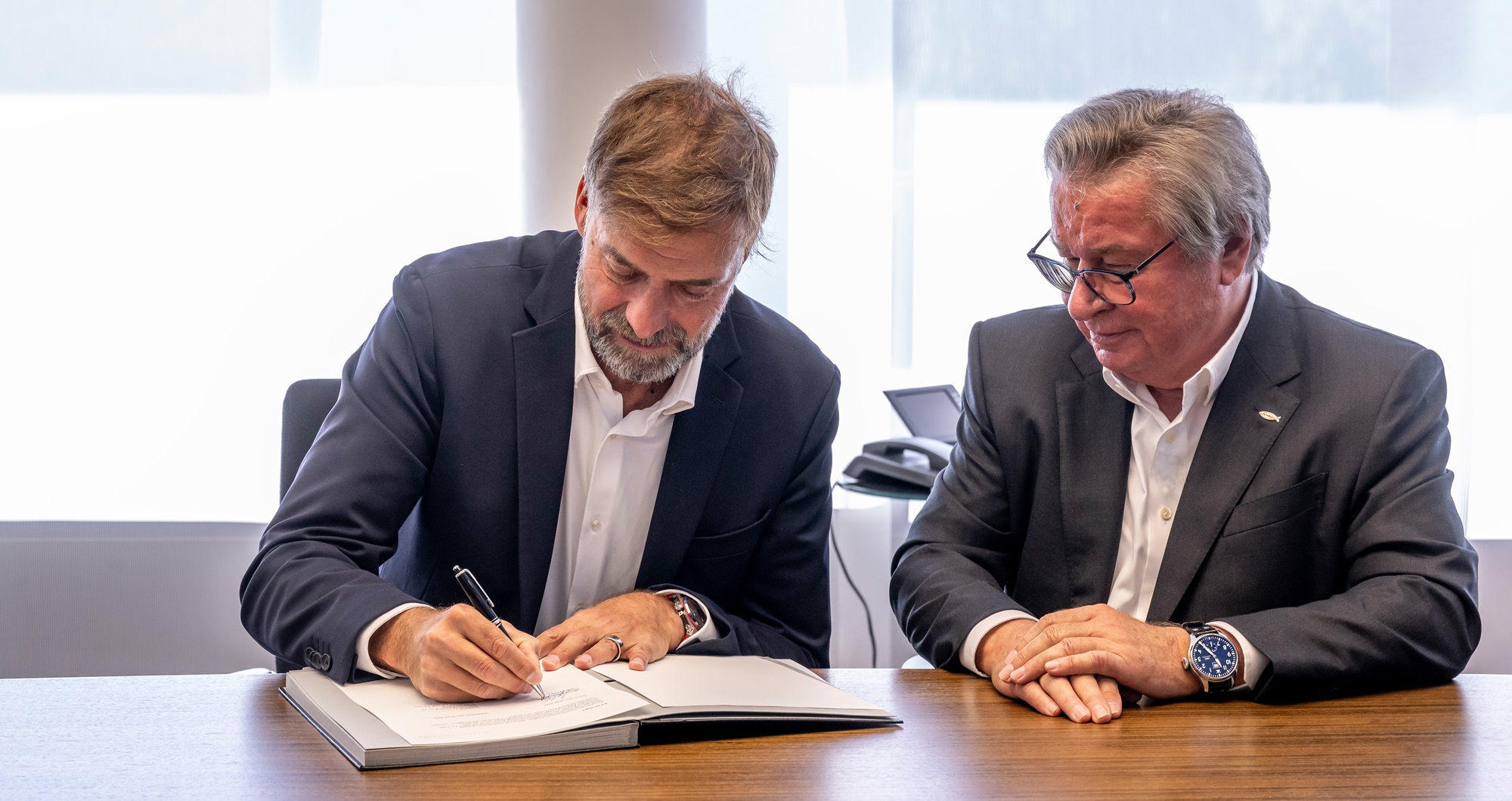 慧鱼品牌大使尤尔根·克洛普(左)和克劳斯·费舍尔教授签署新协议