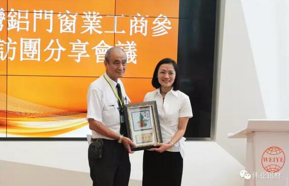 台湾参访团代表梅先生赠送伟业寓意非凡的画作,祝福伟业超越铝界,大展鸿图。
