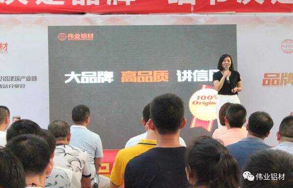 广东伟业集副总经理李伟萍发表重要讲话 匠人之心,磨砺出锋芒 一个追求完美的匠人,总是会不断打磨思想,精益求精。集团副总经理李伟萍表示:“伟业铝材凭借精耕细作、不断创新拓展铝建筑产业链,持续进行品质经营,坚持维护大品牌、高品质、讲信用的企业形象。在为品牌市场之舟保驾护航的同时,也让自己不断强大,更具价值”。