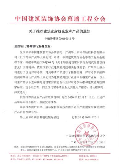 建筑密封胶企业和产品的通知 |