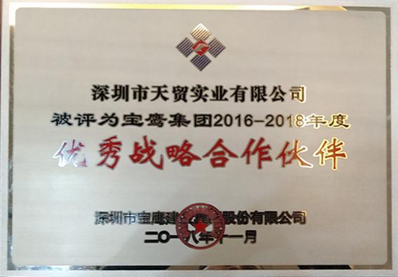 宝鹰集团2016-2018年优秀战略合作伙伴 |