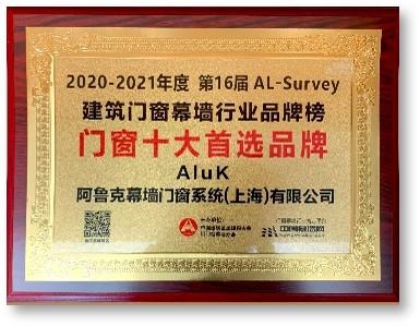 证书名称: 门窗十大首选品牌