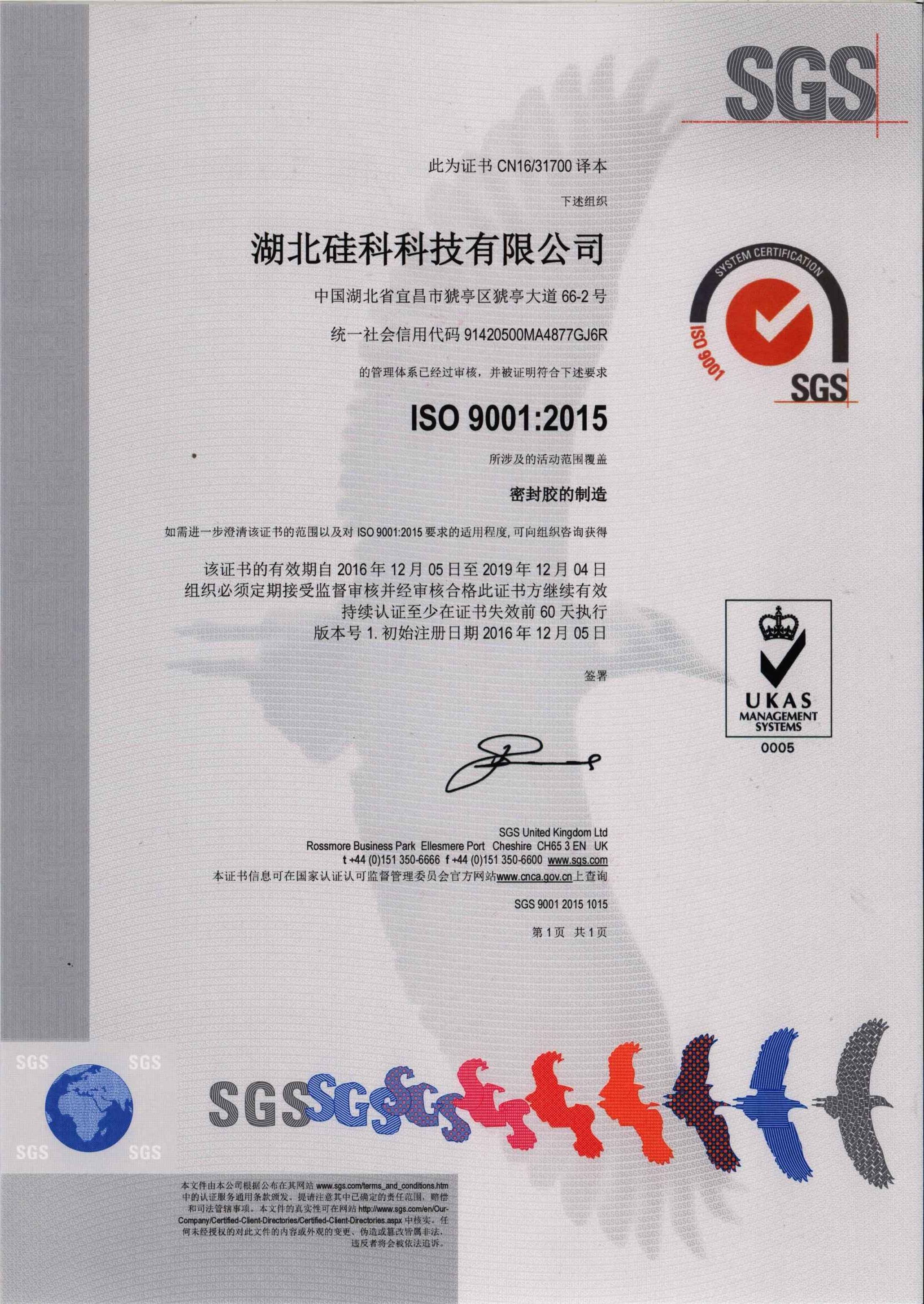 证书名称: ISO 9001认证