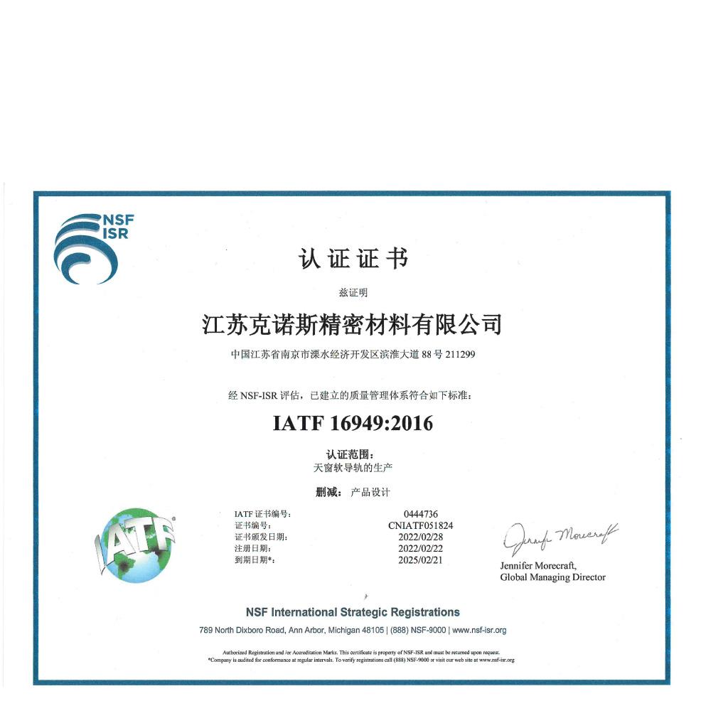证书名称: IATF 16949