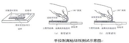 5. 确认结构胶与基材的粘结情况:采用手拉剥离试验方法,沿基材粘结面切割一小段结构胶后,以180℃角方向用力拉扯,看是否出现粘结破坏面积;如没明显粘结破坏,可用刀具切割粘接面,并多次重复上述手拉剥离试验过程。