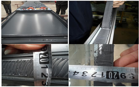 4. 确认结构胶粘接宽度和厚度、粘结宽度边侧与衬垫材料无粘结,确认胶体硬度、颜色,是否有气泡和空穴。