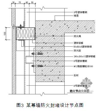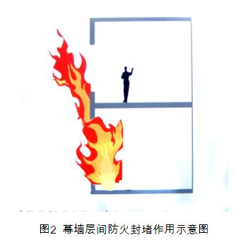消防安全是幕墙安全乃至建筑安全的一个重要组成部分,是考虑建筑安全性不容忽视的一个重要方面。一般建筑物由于建筑构造的要求,在幕墙和楼板之间留有较大的缝隙,若对其没有进行防火封堵密封或封堵密封不好,一旦发生火灾,烟火就会由此向上扩散,迅速造成蔓延。