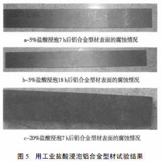 从三组盐酸浸泡试验看出, 型材表面的涂层并没有受损破坏, 只是光泽度暗淡了一点。为什么没有出现用海沙作水泥砂浆时那样的腐蚀情况呢? 是否是用海沙作水泥砂浆的缓慢腐蚀才对铝型材的腐蚀产生效果( 因为用海沙作水泥砂浆的清水墙抹涂一个月后才发现腐蚀孔洞) 。
