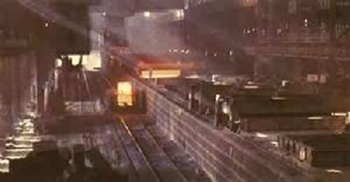 在初轧前把钢锭加热或保温一定时间,通过热扩散使钢锭内部温度均匀而适于金属塑性加工用的坑式炉。炉膛为长方体形,钢锭在炉内竖放。通常由几个炉坑组成一组,共用一套控制系统。多数使用气体燃料加热,也可用重油。 均热炉是周期性工作的,其温度制度和供热制度随时间变化。均热炉主要用于均热脱模后的热钢锭,也可加热冷钢锭。在充分利用钢锭潜热的情况下,单位热耗可为(0.05~0.07)×106千卡/吨。 ![]() 按结构特点 均热炉可分为蓄热式、换热式(有中心供热的、四角供热的和上部双侧或单侧供热的)和电均热炉(见冶金炉)。 蓄热式均热炉 炉坑两端有蓄热室,预热空气和煤气,缺点是来回换向、温度不均匀,影响加热质量;特别是炉坑长度受温度差容许范围的限制,不能适应大钢锭、大轧机的要求。 ![]() 换热式均热炉 中心供热换热式均热炉,炉坑内钢锭靠墙放置,烧嘴在炉底中央,火焰垂直向上。在炉坑两侧有换热器,预热空气。缺点是底部中心烧嘴及其围墙占用炉底面积,并易受钢锭碰撞和炉渣浸蚀;陶质空气换热器漏风严重。中国从60年代将许多这种均热炉改为上部四角供热的换热式均热炉,消除了中心烧嘴所带来的缺点,但结构较为复杂。 上部单侧供热的换热式均热炉,烧嘴在长方形炉坑一个端墙上,火焰呈U形,烟气由供热端烧嘴下面的排烟口排出,进入换热器。优点是单位主跨间的生产率高,可缩短运锭距离,适合于初轧机大型化的要求,是60年代以来国际上新建均热炉的主要炉型,中国新建的均热炉多为这种炉型。主要问题是较难保持沿炉坑长度上的温度均匀性,采用火焰长度和射程可调的烧嘴是解决这一问题的有效措施。 ![]() 电均热炉 电热体为填充有焦炭的碳化硅槽。炉内的金属氧化率不超过0.2~0.3% (其他均热炉约为1%);如果使用保护气氛(加入少量煤气或重油),还可达到无氧化和无脱碳加热,用来加热某些特殊钢锭。 车间设置需求 钢锭初轧前的加热与均热设备的设计。轧钢车间均热炉的炉膛为坑式,也称为坑式均热炉,其上部为活动炉盖,几个炉坑为一组,用钳式吊车从炉坑上口装出料。炉型多以供热方式划分,目前已趋于定型。各国广泛采用上部单侧烧嘴均热炉,50~60年代建造的炉底中心烧嘴式及其改进型(四角烧嘴式)也在使用。由 于连铸技术的发展,自70年代中期以来,很少再新建初轧机和这种坑式均热炉。80年代出现薄板坯连铸连轧技术,厚50~60mm,长40~60m的薄板连铸坯在很长的辊底式均热炉内均热,这种均热炉可容纳2~3块连铸坯。 坑式均热炉设计的主要内容包括选定炉坑容量与尺寸、计算炉子产量与组数、确定均热炉车间布置以及节能措施等。 炉坑容量与尺寸炉坑容量一般与炼钢钢水罐的容量相匹配,以方便钢号管理。炉坑尺寸按不同钢锭在坑内布置图综合选定,钢锭间距要考虑钢锭受热均匀及吊车夹钳装取的要求。 炉子产量与组数根据加热的钢种,锭型尺寸和重量及其在年轧制量中所占的比例、热锭率及热锭温度,计算单坑年烧钢次数和年产量。炉子年有效工作时间除以平均烧钢周期为年烧钢次数。普通钢厂的均热炉年烧钢次数约1100~1500次,特殊钢厂的为700~900次。年烧钢次数乘以炉单坑平均装入量为单坑年产量。 从炉子结构及布置考虑常以2~4个炉坑为一组,根据车间的年产量及单坑年产量计算炉子组数,取整数并预留1~2组。均热炉车间布置均热炉车间与主轧线的平面布置主要有T字形(垂直)和一字形(平行)两种。 除外部条件要求外,主要考虑出炉钢锭至初轧机的运送时间应满足轧制节奏的要求。 主要节能措施均热炉的能耗一般用吨锭热耗(GJ/t)计算。影响吨锭热耗的主要因素是热锭率及热锭温度、炉子余热回收率及生产调度管理。较好的初轧厂均热炉热锭率为90%以上,热锭平均温度为880~900℃,助燃空气预热温度为500~600℃,吨锭热耗为0.71~0.92GJ/t。近年内采用钢锭液芯加热技术(即钢 锭尚未完全凝固就进入炉内加热)、计算机控制等节能技术,均热炉吨锭能耗可降至0.2~0.6GJ/t。 其他补充 |