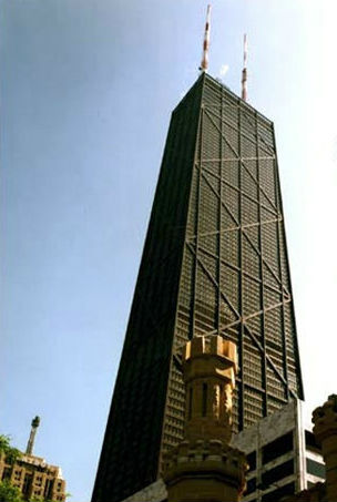 柳京饭店,位于朝鲜平壤,是一幢未完工的摩天大楼。柳京饭店以平壤的古名“柳京”为名。大厦为三角金字塔式建筑,斜面角度为75度,高105层 325米,楼面总面积360,000平方米,混凝土结构。柳京饭店原来打算成为拥有三千间房间,全球最高之饭店,并预计在1989年开幕。大厦工程1982年起展开,1992年完成结构工程后停工,现时为一混凝土空壳,未有装上窗户及外墙模板、亦无任何内部装置。柳京饭店平顶后一直是平壤最显眼的地标建筑,不过平壤的地图上都没有标签。 “柳京饭店”大楼为三角金字塔式建筑,斜面角度为75度,高330米,占地面积360,000平方米,计划有3,000房间(注明:朝鲜一年的旅客流量为2100人)、7个旋转餐厅。如果建成,当时它将是世界上最高的饭店、第七高的大楼、还是世界上位于纽约和芝加哥以外的首个高于100层的建筑。当然,它也是世界上最高的烂尾楼。现在,柳京饭店又复工了,但是劣质的水泥结构随时都可能倒塌。 16-20名 第二十名:芝加哥 约翰•汉考克大厦