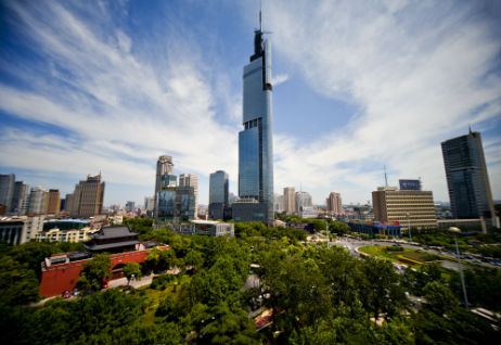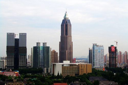 紫峰大厦也叫绿地广场.紫峰大厦(Greenland Square Zifeng Tower),位于中国江苏省省会南京市绿地广场,是一座正在建造的摩天大楼,发展商是上海绿地集团及南京国资集团。南京绿地广场•紫峰大厦选址位于南京南鼓楼区鼓楼广场,东至中央路,西至北京西路。鼓楼周边区域有玄武湖、北极阁、鼓楼、明城墙等历史文物古迹;该地段是南京城区的中心点及城市的制高点,周边远景尽收眼底:东可眺望紫金山、西可望长江、南有雨花台、北有幕府山。也是全国著名高等学府南京大学、东南大学名校集聚之地;该地段交通便利,地铁一号线重要站点设置其中;是南京行政中轴线和商业中轴线的交界之处。 建筑概况:建筑用地面积为18721平方米。A1地块总建筑面积约26万平方米,基地内设一高一低2栋塔楼(主楼和副楼),用商业裙房将2栋塔楼联成一个整体建筑群;主楼地上89层,总高度450米,屋顶高度389米,为中国大陆第2高楼(仅次于上海环球金融中心) ,世界第7高楼(包括在建的)。主要功能设有六星级酒店(约65000平方米)、甲级办公楼(约55000平方米,副楼地上24层,地上建筑有效高度99.7米,主要功能甲级办公楼(约21000平方米);裙房地上6层局部7层,地上有效高度37米局部44米,主要功能为商场(约45000平方米)与酒店附属用房。地下4层,主要功能为商场、停车库及设备机房(约61000平方米)。主楼办公层高4.2米,酒店层高3.8米,副楼层高4米,商业层高6米。整个建筑有50多部垂直电梯与30多部自动扶梯来保证整个建筑的人流运输,以保证整个建筑的品质。该项目于2005年5月底开工,2009年6月底交付使用,世界第一座完全中国的超级摩天大楼——国人投资、国人建设,一座面向未来的建筑,一座南京新的方向标,将在六朝古都——南京拔地而起。 第三名 吉隆坡 国家石油公司双塔大楼