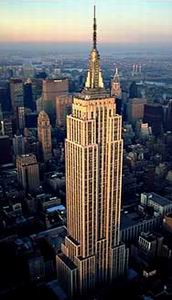 1993年香港中环广场大厦建成,高374米,78层,是香港之前最高的摩天大楼。也同样跻身于世界最高建筑物前15名之列。 从1992 年到 1996年是亚洲最高的建筑物。后来被香港“国际金融中心二期”超过。 大厦看起来是三角形造型,其实并不是真三角形因为它的尖角均被切去。原因有二:首先是为了能有更多便于使用的室内面积;而更重要的是避免以其税利尖角冲向邻居而得罪他们。这样做不仅是不礼貌的更重要的是有碍"风水"。 大厦顶部以金字塔形状的坡顶以及立于其上的桅杆作收束,晚间日光照耀下闪闪发光。立面以三种不同颜色的隔热玻璃围护。金色、银色涂层的玻璃构成垂直和水平图案而形别涂饰的花玻璃穿插其间,形成典雅而又闪烁发光的形象。 第十一名:纽约 帝国大厦