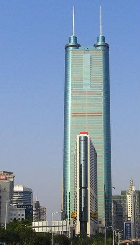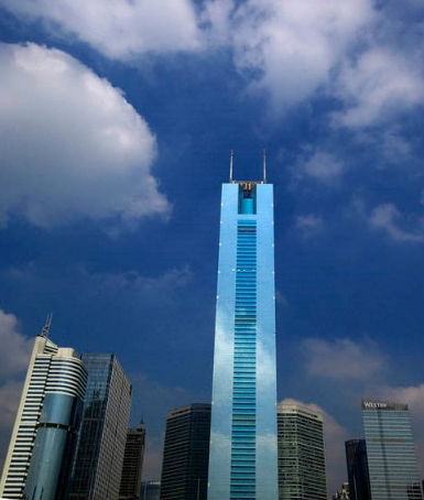 深圳“信兴广场”(Shun Hing Square)的高度为384米(1,260 英尺),是一幢69层的摩天楼。“信兴广场”在1996年建成时,是中国最高的建筑物,一年后为广州的“中信广场大厦”超过。 信兴广场地王大厦由68层的商业大楼、32层的商务公寓、5层的购物中心及2层地下停车场组成,楼高384米,占地18734平方米,总建筑面积27万平方米,总投资40亿港币。 第九名:广州 中信广场大厦
