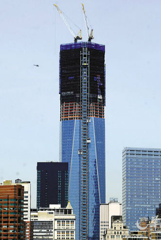 被称为“台北新地标”的台北101大楼于 1998年1月动工,主体工程于2003年10月完工,高508米。有世界最大且最重的 “风阻尼器”:一个悬挂在大楼内部楼顶的重达660吨的铁球,为了在台风到来时保持平衡,还有两台世界最高速的电梯,从一楼到89楼,只要39秒的时间。它保持世界上速度最快的电梯的纪录(每小时60.4公里)。 在世界高楼协会颁发的证书里,台北101大楼拿下了“世界高楼”四项指标中的一项,即“含塔尖最高建筑结构建筑物”(509米)。 2在建超高建筑前五名 在建第五名:纽约 世贸中心1号楼自由塔