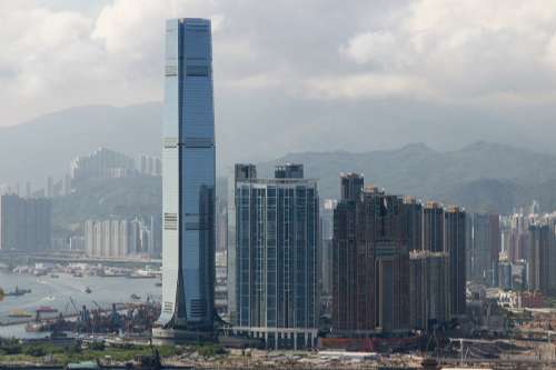 环球贸易广场(International Commerce Centre,简称ICC)位于香港西九龙柯士甸道西1号。它是香港港铁(前称地铁)九龙站Union Square第七期发展项目,由新鸿基地产全资发展。总楼面面积为2,822,039平方呎。实际高度达484米。 环球贸易广场是一座118层高的综合式大楼,大厦外型由世界著名建筑事务所Kohn Pedersen Fox Associates(KPF)设计。其可用楼层的水平高度达490米,实际高度则为484米。环球贸易广场的官方动土典礼于 2005年11月9日举行,标志着环球贸易广场的兴建工程正式展开。环球贸易广场内的10至99楼为甲级写字楼,总楼面面积达250万平方呎。六星级的香港九龙丽嘉酒店(The Ritz-Carlton Hong Kong, Kowloon)坐落于环球贸易广场最顶的15层内,提供312间房间。建成后将取代上海金茂大厦的金茂君悦大酒店,成为全球最高的六星级酒店。环球贸易广场内的100楼设有公众观景层,预计于2010年底对外开放。游客可在此环观维多利亚港的景色。逾100万平方呎的大型主题商场圆方坐落于环球贸易广场的建筑群中 。由两座约270米高的摩天大厦组成的天玺(Union Square第六期)坐落于环球贸易广场毗邻。环球贸易广场落成后,将与对岸的国际金融中心二期组成巍峨的“维港门廊”,构成独特的海港景观,成为香港的新地标,并进一步巩固香港作为国际商业、贸易及金融中心的地位。 在建第二名 上海 上海中心