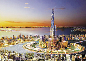 丝绸之城:科威特市政议会批准了占地250平方公里的开发项目的草图,这项名为“丝绸之城”的开发项目将位于首都科威特的对面。除此之外,市政议会也同意建造贾比尔-阿尔-艾哈迈德桥,这座桥将把两个市中心联系在一起。 丝绸之城的建造将历时25年左右,建造成本估计在1320亿美元上下。到目前为止,还没有任何迹象显示建造工作将于何时启动。这个庞大的项目包括一个面积200公顷的沙漠自然保护区、一个新机场、一个大型商业中心以及涉及环境、体育、媒体、健康、教育和各种行业的建筑和设施。 丝绸之城的中心将成为高塔Burj Mubarak Al-Kabir的所在地,这座令人吃惊的建筑高度将达到1001米,几乎是台北101的两倍。台北101的高度为509米,仍旧拥有官方认证的世界最高建筑的头衔。 中国117大厦